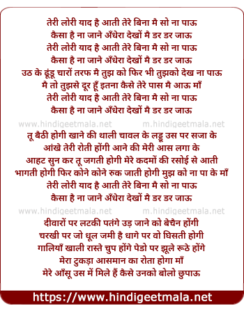 Lyrics of Teri Lori Yaad Hai Aatii - तेरी लोरी याद है आती