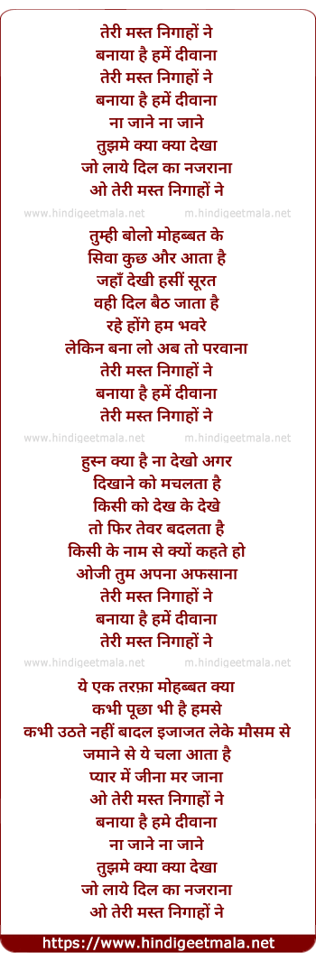 Lyrics of Teri Mast Nigaho Ne Banaya Hai Hame Diwana - तेरी मस्त निगाहों ने बनाया है हमें दीवाना