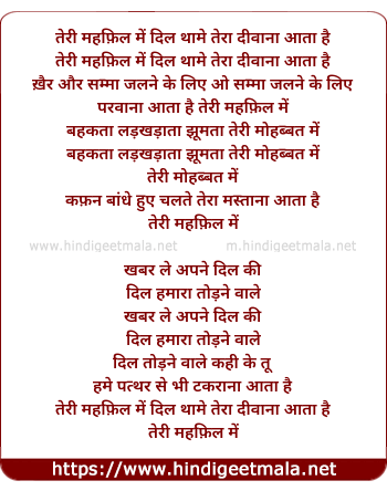 Lyrics of Teri Mahfil Me Dil Thame - तेरी महफ़िल में दिल थामे