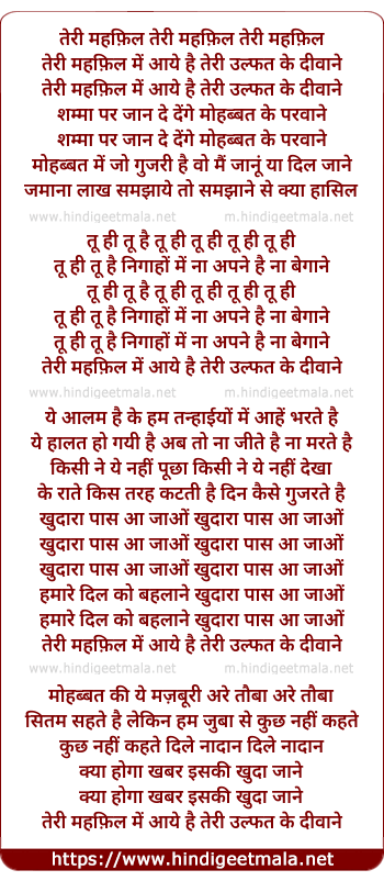 Lyrics of Teri Mehfil Mein Aaye Hai - तेरी महफ़िल में आये है