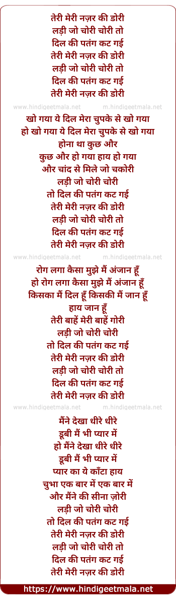 Lyrics of Teri Meri Doree - तेरी मेरी नज़र की डोरी