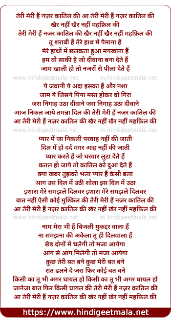 Lyrics of Teri Meri Hai Nazar Qatil Ki - तेरी मेरी हैं नज़र कातिल की
