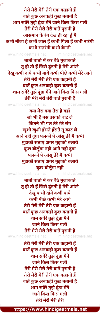 Lyrics of Teri Meri Kahani - तेरी मेरी कहानी