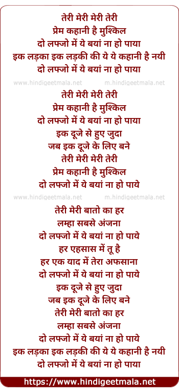Lyrics of Teri Meri Meri Teri (Reprise) - तेरी मेरी मेरी तेरी