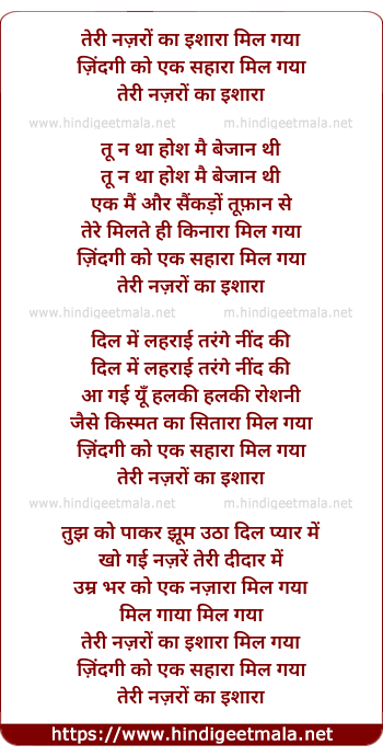 Lyrics of Teri Najro Ka Ishara Mil Gaya - तेरी नज़रों का इशारा मिल गया