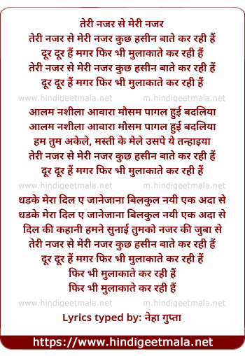 Lyrics of Teri Nazar Se Meri Nazar - तेरी नजर से मेरी नजर