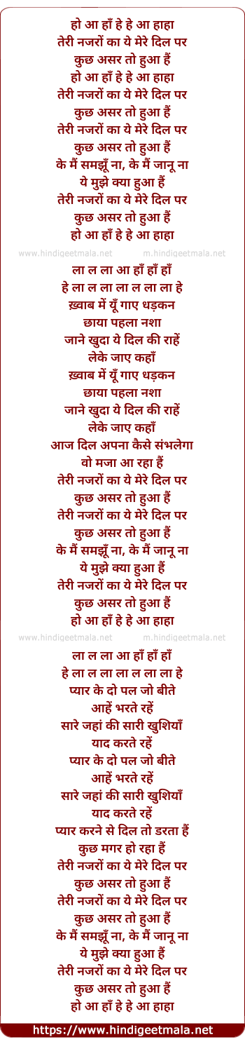 Lyrics of Teri Nazare Ka - हो आ हाँ हे हे आ हाहा