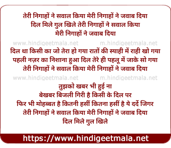 Lyrics of Teri Nigaho Ne Sawal Kiya - तेरी निगाहों ने सवाल किया