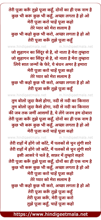 Lyrics of Teri Pooja Karu - तेरी पूजा करूँ