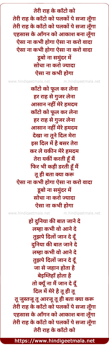 Lyrics of Teri Raah Ke Katon Ko - तेरी राह के काँटो को
