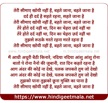Lyrics of Teri Seemye Koi Nahi Hai - तेरी सीमाए कोई नहीं हैं,