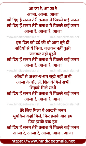 Lyrics of Kho Diye Hain Sanam Teri Talaash Me Pichhle Kai Janam - खो दिए हैं सनम तेरी तलाश में पिछले कई जन्म