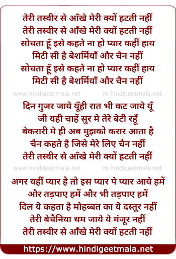 Lyrics of Teri Tasveer Se Ankhe Meri - तेरी तस्वीर से आँखे मेरी