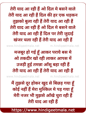 Lyrics of Teri Yad Aa Rahi Hai - तेरी याद आ रही हैं