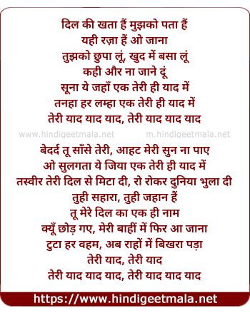 teri yaad yaad yaad, teri yaad yaad yaad