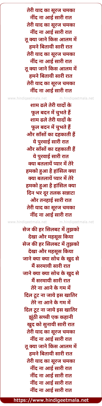 Lyrics of Teri Yaad Kaa Suraj Chamka - तेरी याद का सूरज चमका