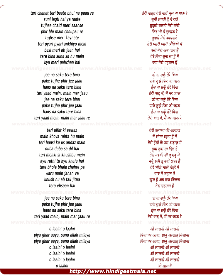 Lyrics of Teri Yaad (Man Taneja) - तेरी चाहत तेरी बातें भूल ना पाऊ रे