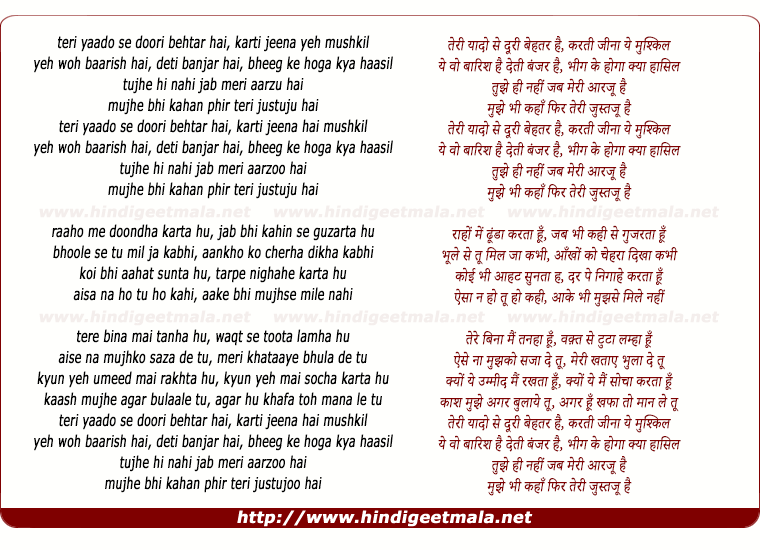 Lyrics of Teri Yaado Se Doori Behtar Hai - तेरी यादो से दूरी बेहतर है