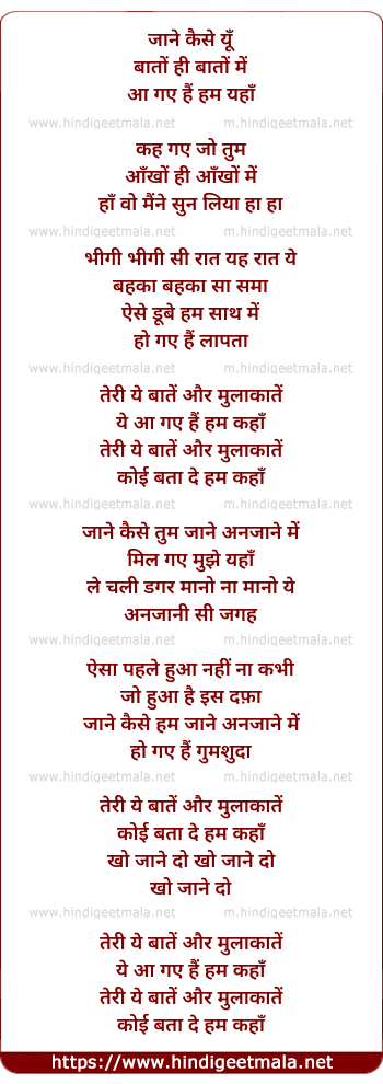 Lyrics of Teri Yeh Baatein - तेरी यह बातें