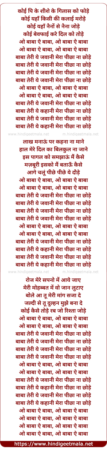 baabaa teri ye jawaani meraa pichhaa naa chhode