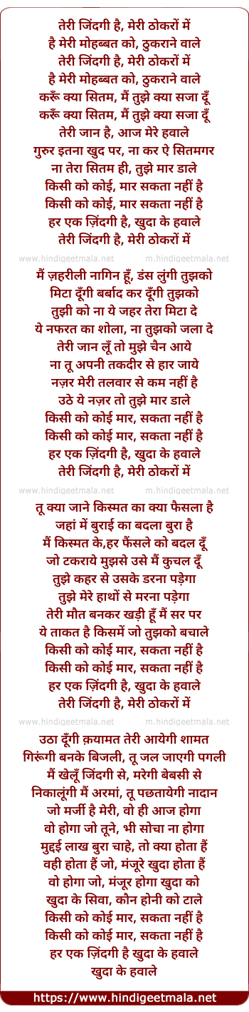 Lyrics of Teri Zindagi Hai - तेरी जिंदगी है, मेरी ठोकरों में