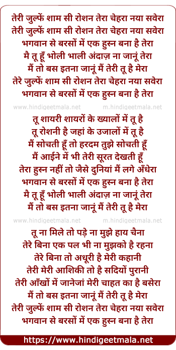 Lyrics of Teri Zulfe Shaam See Roshan - तेरी जुल्फें शाम सी रोशन