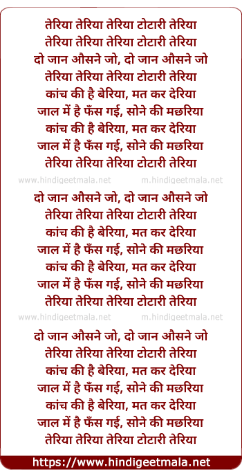 Lyrics of Teriya Teriya Teriya Totari Teriya - तेरिया तेरिया तेरिया टोटारी तेरिया