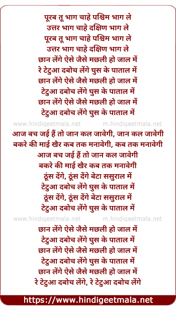 Lyrics of Tetua - पूरब तू भाग चाहे पश्चिम भाग ले