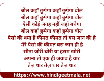 Lyrics of Tez Dhaar (Billa - बोल कहाँ छुपेगा कहाँ छुपेगा बोल