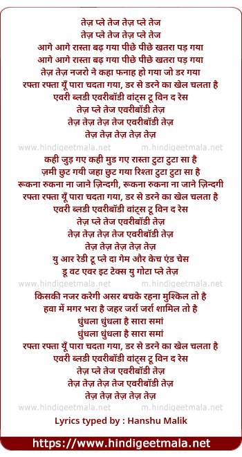 Poetic Translation - Lyrics of Tezz (Remix) - तेज़ प्ले तेज तेज़ प्ले तेज