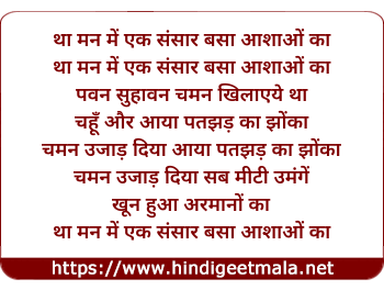 Lyrics of Tha Man Me Ek Sansar Basa Ashao Ka - था मन में एक संसार बसा आशाओं का