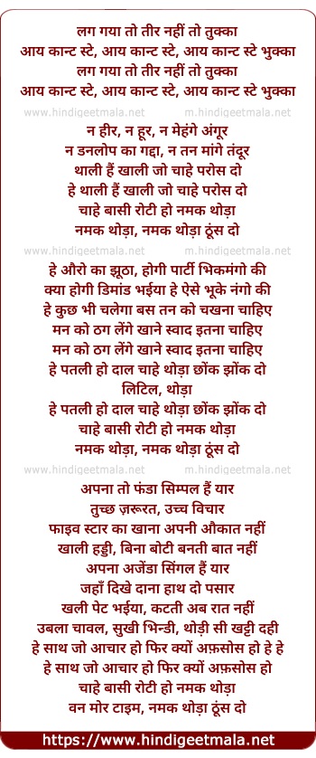 Lyrics of Thaali Hai Khaali Na Heer Na Hoor - थाली हैं खाली ना हीर ना हूर
