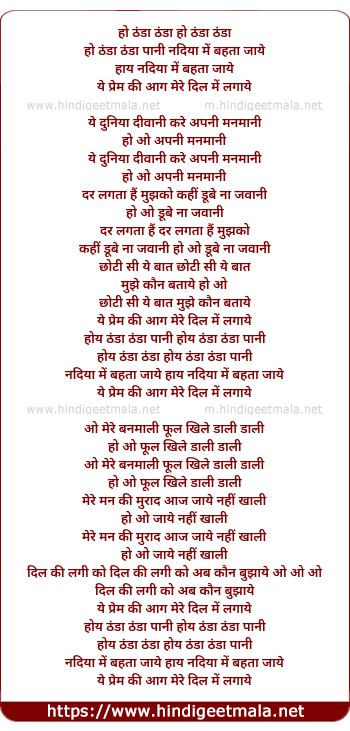 Lyrics of Thanda Thanda Pani Nadiya Me - ठंडा ठंडा पानी नदिया में