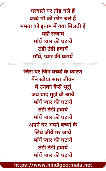 Poetic Translation - Lyrics of Thandi Thandi Hawaye (Ii) - ठंडी ठंडी हवायें