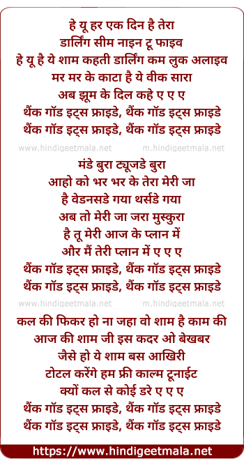 Poetic Translation - Lyrics of Thank God Its Friday - थैंक गॉड इट्स फ्राइडे
