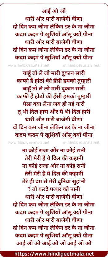 Poetic Translation - Lyrics of Thari Aur Mari - थारी और मारी