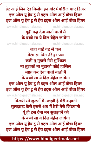 Lyrics of That I Live (Yun Hi Keh Dena) - दैट आई लिव (यूं ही कह देना)