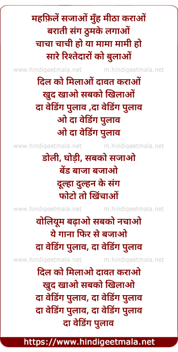 Lyrics of The Wedding Pullav - दा वेडिंग पुलाव