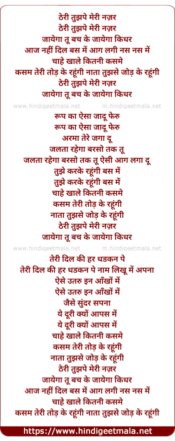 Poetic Translation - Lyrics of Thehri Tujhpe Meri Nazar