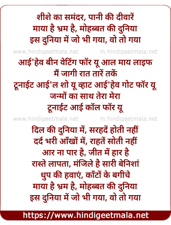 maya hai bharam hai, mohabbat ki duniya