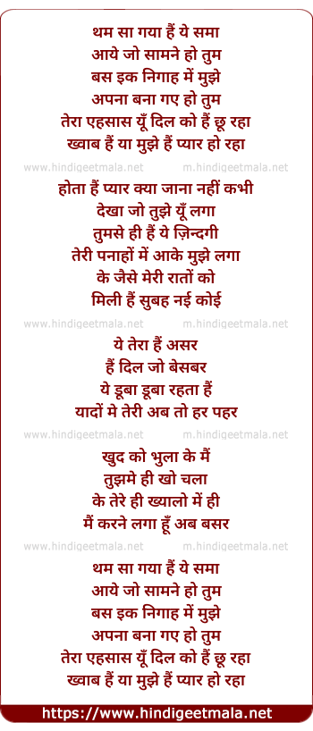 Lyrics of Thham Sa Gaya - थम सा गया