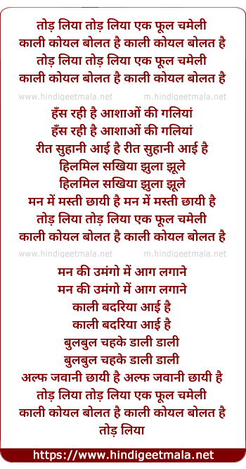 Lyrics of Thod Liya Ek Phool Chameli - तोड़ लिया तोड़ लिया एक फूल चमेली