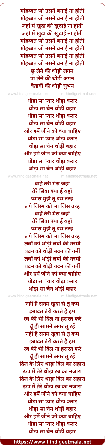 Lyrics of Thoda Sa Pyar - थोड़ा सा प्यार