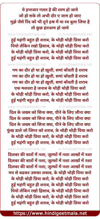 Lyrics of Thodee Thodee Piya Karo - ये इन्तजार गलत है की शाम हो जाये
