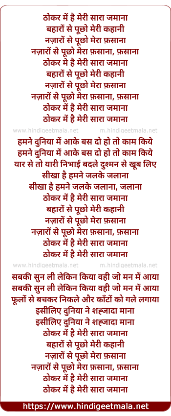 Lyrics of Thokar Me Hai Meri Sara Zamana - ठोकर में है मेरी सारा जमाना