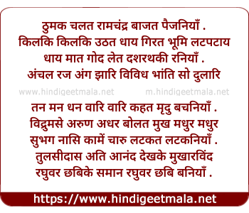 Lyrics of Thumak Chalat Raamachandra Baajata Painjaniyaan - ठुमक चलत रामचंद्र बाजत पैजनियाँ .
