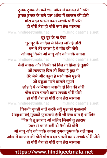 Lyrics of Thumak Thumak Chale Chaal Aankh Me Kajal Ki Dori - ठुमक ठुमक चले चाल आँख में काजल की डोरी