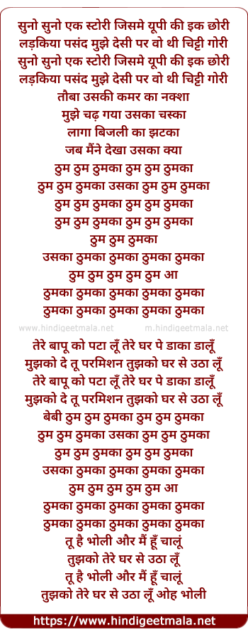 Lyrics of Thumkaa - ठुमका