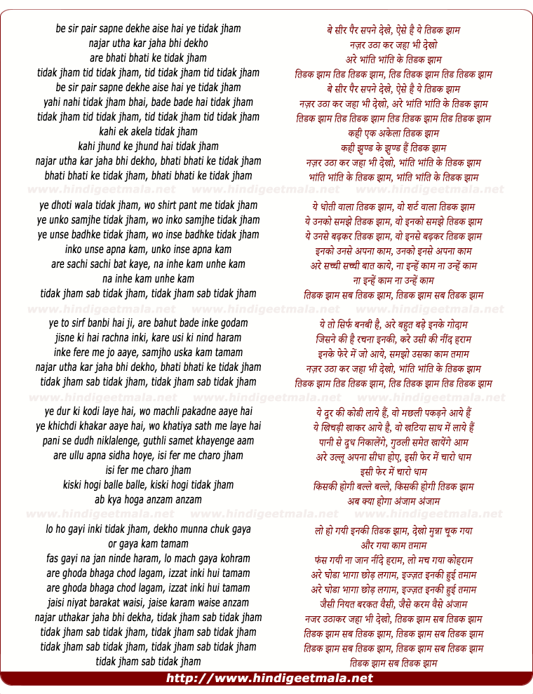 yahi nahi tidak jham bhai, bade bade hai tidak jham