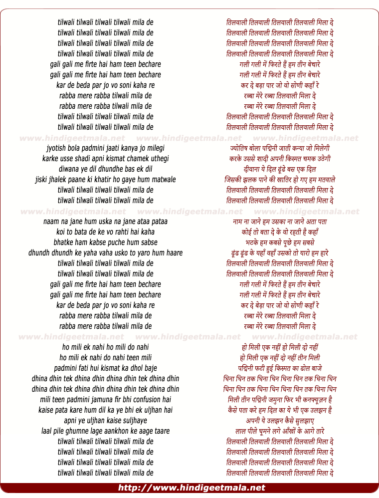 Lyrics of Tilwali Tilwali - तिलवाली तिलवाली